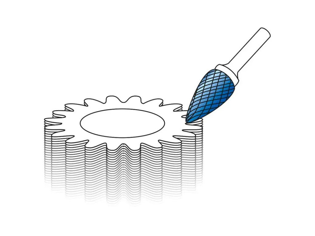 • Hohe Zerspanleistung durch Kreuzverzahnung: