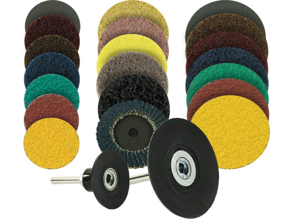 Gerade im Prototypenbau, individuellen Stahlbau oder auf Montage kommen oft verschiedenste Scheiben zum Einsatz bis das gewünschte Ergebnis erreicht ist. Das PINLOC Schnellwechselsystem erleichtert den Werkzeugwechsel enorm, da die Scheiben durch einfaches Aufdrehen auf dem PINLOC Stützteller befestigt werden – ganz ohne zusätzliche Werkzeuge wie Spannschlüssel etc. Beinhaltet Werkzeuge in drei verschiedenen Durchmessern (50 / 60 / 75 mm) für Grobschliff (z.B. Schweißnahtentfernung) bis zum perfekten Spiegelglanz auf sämtlichen Metallen.