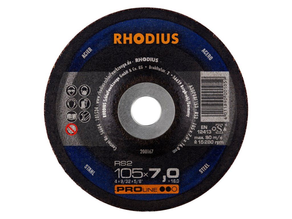 Die RHODIUS RS2 wurde gezielt für die Bearbeitung von Stahl (Schwarzstahl auch Baustahl, St37, S235JR, 1.0037 oder Karbonstahl genannt) und Stahlguss entwickelt. Die Schruppscheibe RS2 eignet sich hervorragend für das Anfasen, für die Schweißnahtvorbereitung, für das Egalisieren von Schweißnähten sowie um Kanten zu brechen und zum Entgraten. Sie ist darüber hinaus auch für den Flächenschliff geeignet.