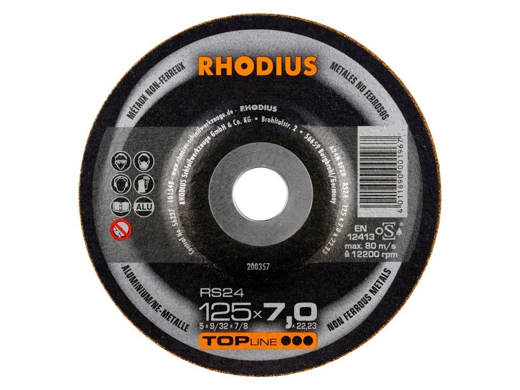 Die RHODIUS RS2 wurde gezielt für die Bearbeitung von Stahl (Schwarzstahl auch Baustahl, St37, S235JR, 1.0037 oder Karbonstahl genannt) und Stahlguss entwickelt. Die Schruppscheibe RS2 eignet sich hervorragend für das Anfasen, für die Schweißnahtvorbereitung, für das Egalisieren von Schweißnähten sowie um Kanten zu brechen und zum Entgraten. Sie ist darüber hinaus auch für den Flächenschliff geeignet.