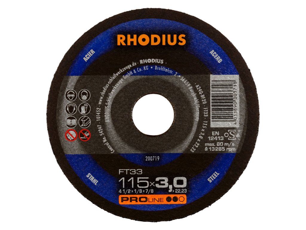 In der Anwendung überzeugt die FT33 durch einen aggressiven Schnitt und eine hervorragende Laufruhe. Auch das präzise Arbeiten in dünnwandigem Material ist kein Problem. Mit dieser Trennscheibe lässt sich besonders wirtschaftlich arbeiten. Dieses RHODIUS Qualitätswerkzeug eignet sich besonders für das Trennen von Baustahl, Werkzeugstahl, hochlegiertem Stahl, Trägern, Profilen, Platten und Traversen.