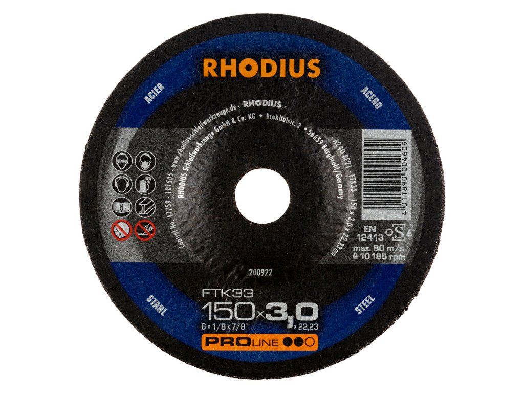In der Anwendung überzeugt die FTK33 durch einen aggressiven Schnitt und eine hervorragende Laufruhe. Auch das präzise Arbeiten in dünnwandigem Material ist kein Problem. Mit dieser Trennscheibe lässt sich besonders wirtschaftlich arbeiten. Dieses RHODIUS Qualitätswerkzeug eignet sich besonders für das Trennen von Baustahl, Werkzeugstahl, hochlegiertem Stahl, Trägern, Profilen, Platten und Traversen.