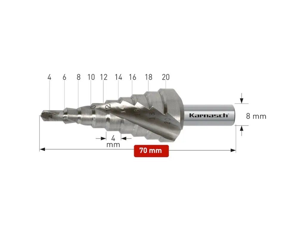 Der Karnasch Professional Stufenbohrer aus HSS-XE Stahl, Spiral genutet mit Kreuzanschliff