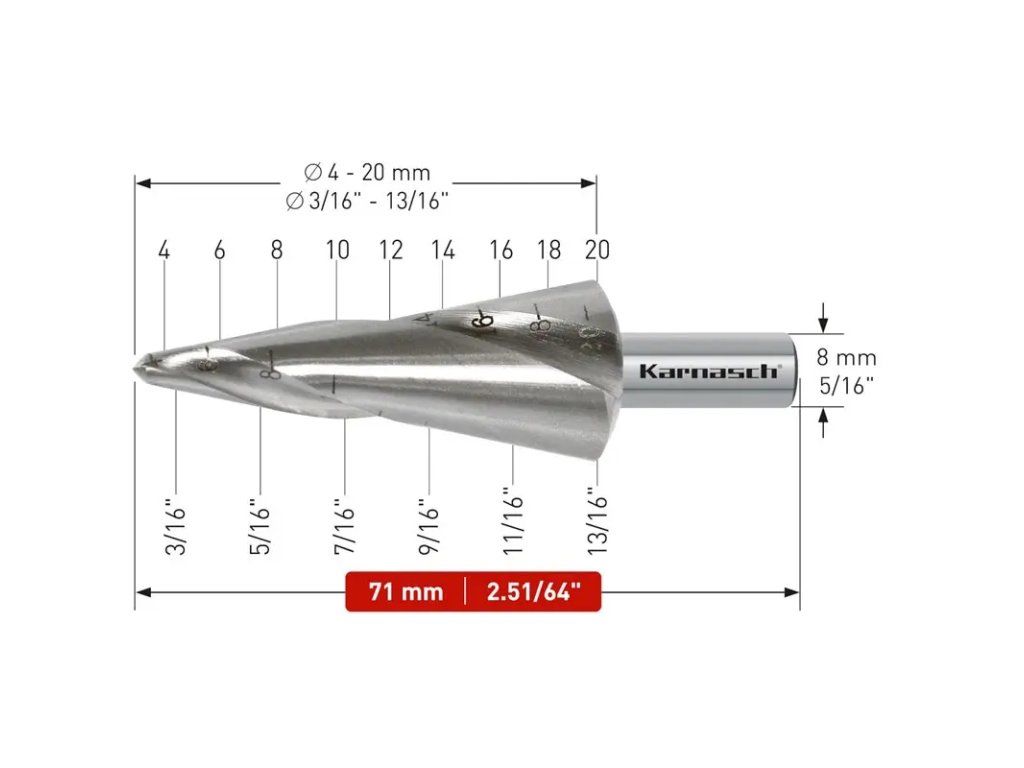 Der Karnasch Professional Blechschälbohrer aus HSS-XE Stahl, Spiral genutet mit Kreuzanschliff
