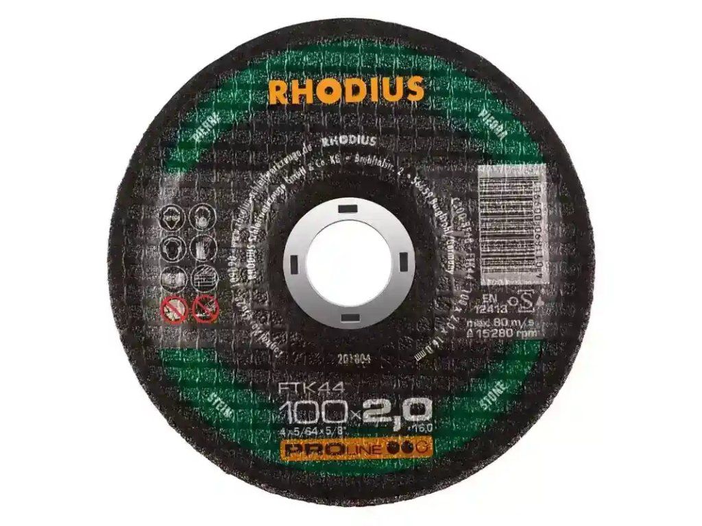 Die Trennscheibe enthält hochwertiges SIC und 2 vollflächige Glasfasergewebe. Die Mindestseitenlast für die Trennscheibe beträgt nach EN 12413 und oSa 40 N, bzw. ab Durchmesser 150 mm 50 N. Im Bohrungsring ist das Verfallsdatum (drei Jahre) eingeprägt. Durch aufwendige In-Prozess-Kontrollen in der Produktion wird eine gleichbleibende Qualität gewährleistet. Um ein Maximum an Sicherheit zu bieten, wird jede tausendste Scheibe zerstörend getestet. Es handelt sich hier um eine Scheibe in gekröpfter Form (Form 42). Die Trennscheibe ist im Schnitt besonders stabil.