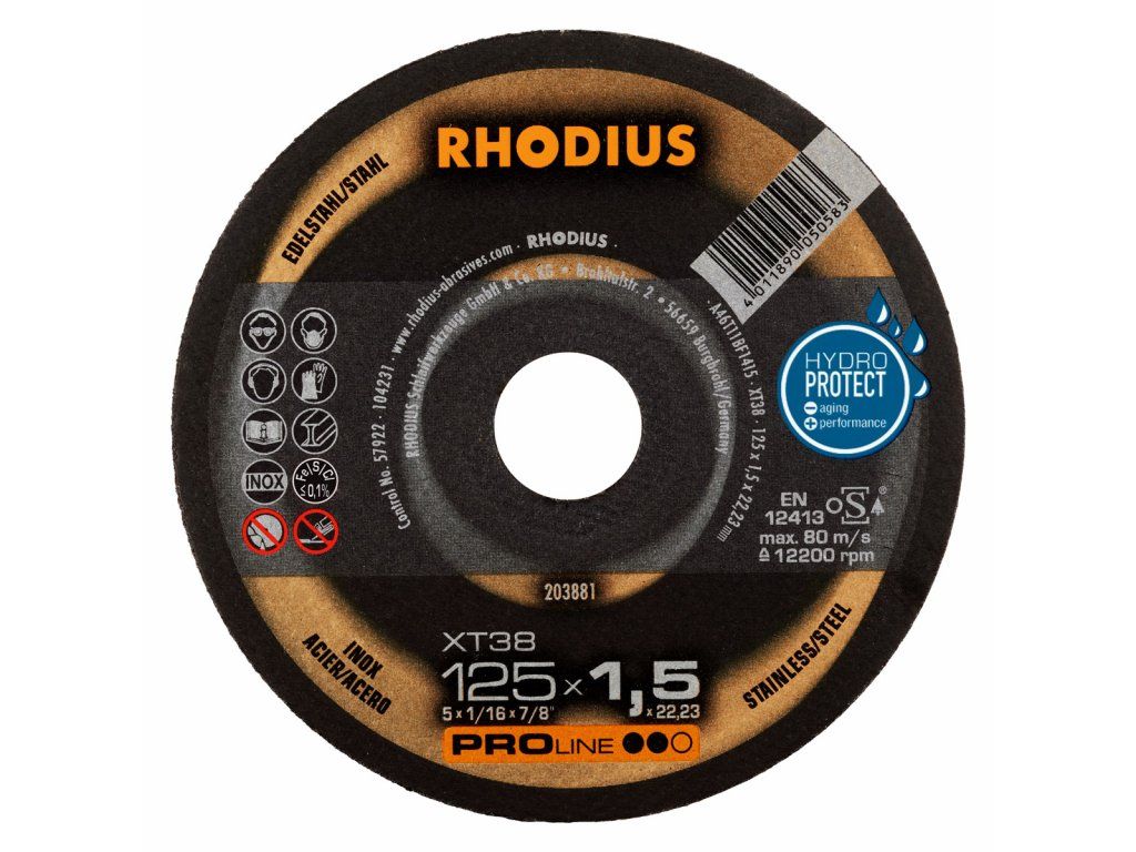 In der Anwendung überzeugt die XT38 durch eine sehr hohe Lebensdauer (Standzeit) auch im Vollschnitt und mit einem besonders aggressiven, leichten und schnellen Schnitt. Auch das präzise Arbeiten in dünnwandigem Material ist kein Problem. Die Scheibe zeichnet sich hier durch den geringen Funkenflug, wenig Staubentwicklung und eine hervorragende Laufruhe aus. Sie macht die Arbeit leichter und ist besonders wirtschaftlich. Die XT38 bietet dem Nutzer ein optimales Preis-Leistungs-Verhältnis. Dieses RHODIUS Qualitätswerkzeug eignet sich besonders für das Trennen von Baustahl, Werkzeugstahl, Federstählen, dünnwandigen Blechen, rostbeständigem und säurebeständigem Stahl, hochlegiertem Stahl, hochfestem Blech, Kabelschächten, Trägern und Profilen.