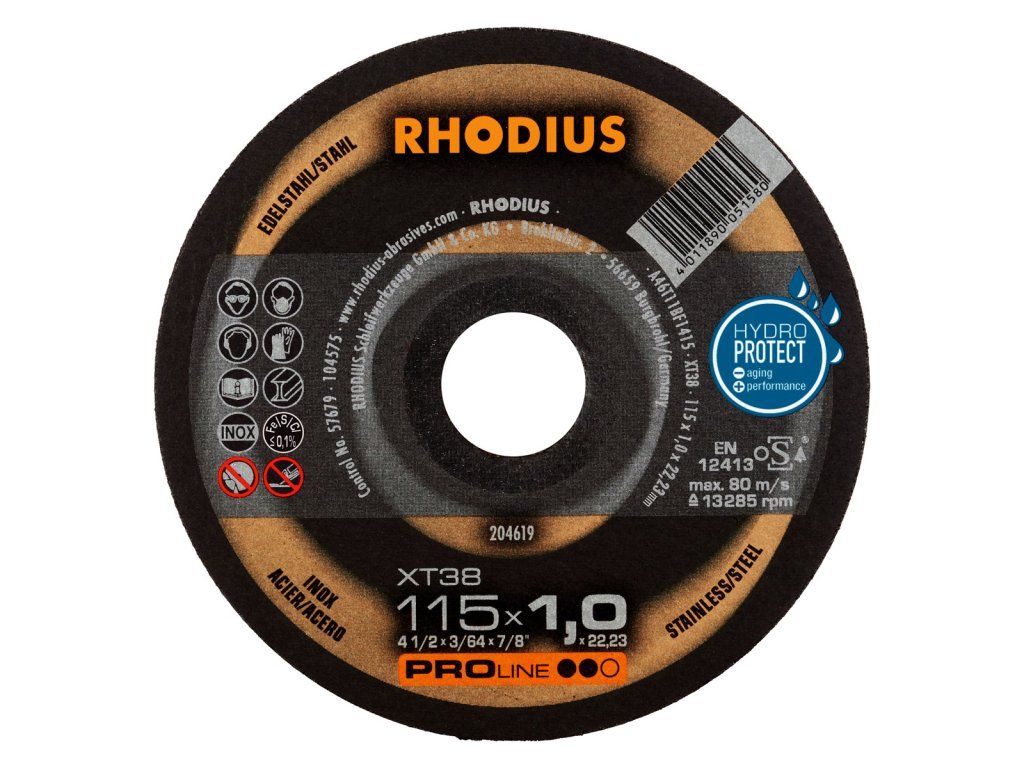 In der Anwendung überzeugt die XT38 durch eine sehr hohe Lebensdauer (Standzeit) auch im Vollschnitt und mit einem besonders aggressiven, leichten und schnellen Schnitt. Auch das präzise Arbeiten in dünnwandigem Material ist kein Problem. Die Scheibe zeichnet sich hier durch den geringen Funkenflug, wenig Staubentwicklung und eine hervorragende Laufruhe aus. Sie macht die Arbeit leichter und ist besonders wirtschaftlich. Die XT38 bietet dem Nutzer ein optimales Preis-Leistungs-Verhältnis. Dieses RHODIUS Qualitätswerkzeug eignet sich besonders für das Trennen von Baustahl, Werkzeugstahl, Federstählen, dünnwandigen Blechen, rostbeständigem und säurebeständigem Stahl, hochlegiertem Stahl, hochfestem Blech, Kabelschächten, Trägern und Profilen.