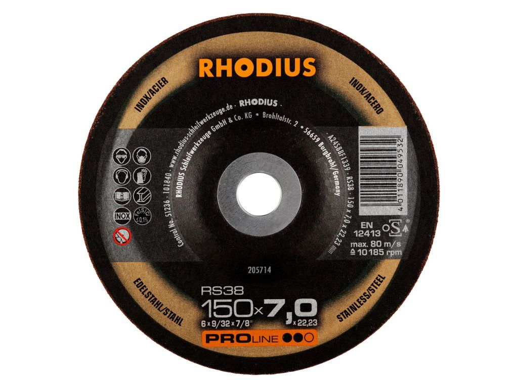 Der Anwender erhält mit der RS38 ein Werkzeug, das den hohen Qualitätsansprüchen in Industrie und Handwerk gerecht wird. Um noch wirtschaftlicher arbeiten zu können, empfehlen sich RHODIUS Schruppscheiben der Qualitätslinie TOP.