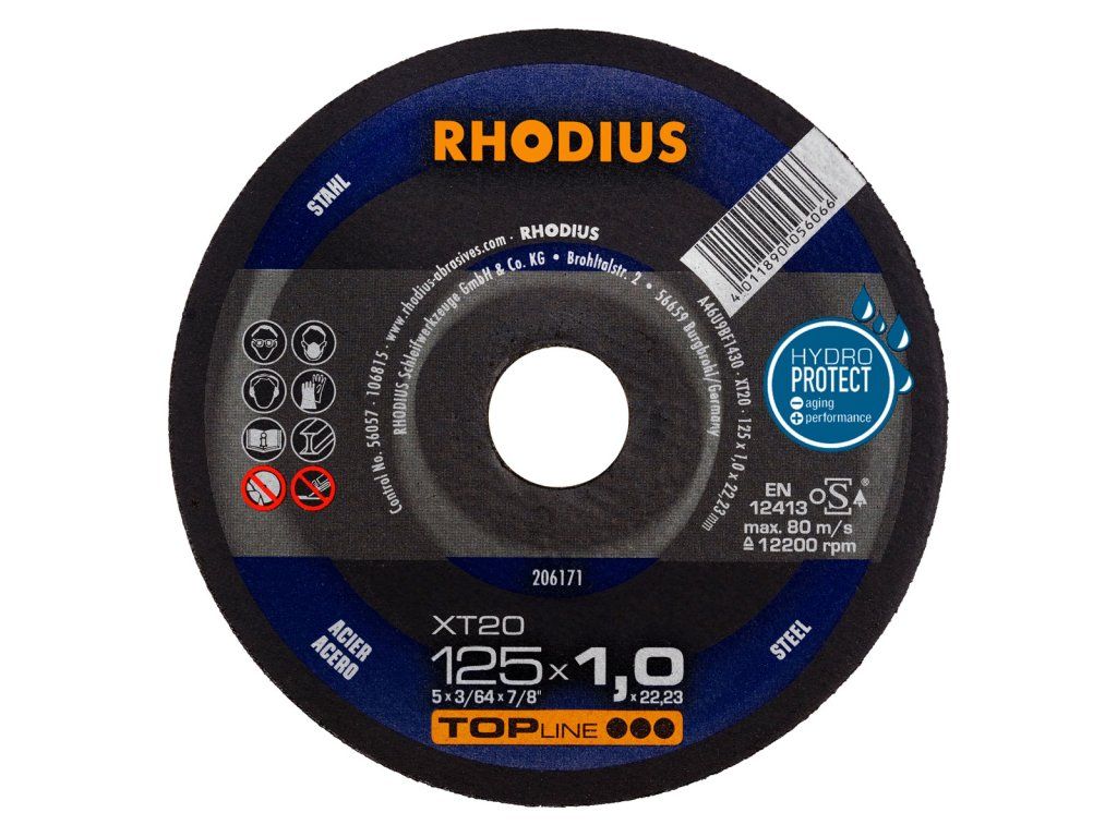 Es handelt sich hier um eine Scheibe in gerader Form (Form 41). Trennscheiben mit gerader Form ermöglichen eine größere Eintauchtiefe und somit auch mehr Schnitte. Die RHODIUS XT20 Scheiben in den Durchmessern 180 mm und 230 mm profitieren zudem von der hier eingesetzten RHODIUS EXTENDED Technologie für noch mehr Lebensdauer.