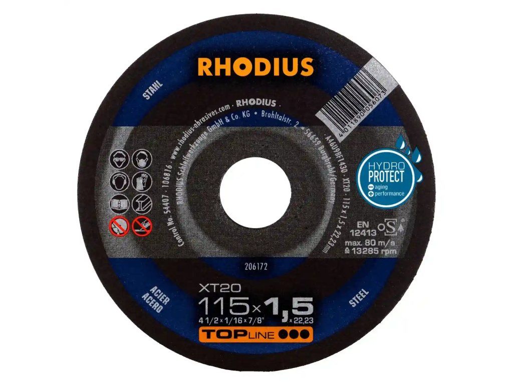 Es handelt sich hier um eine Scheibe in gerader Form (Form 41). Trennscheiben mit gerader Form ermöglichen eine größere Eintauchtiefe und somit auch mehr Schnitte. Die RHODIUS XT20 Scheiben in den Durchmessern 180 mm und 230 mm profitieren zudem von der hier eingesetzten RHODIUS EXTENDED Technologie für noch mehr Lebensdauer.