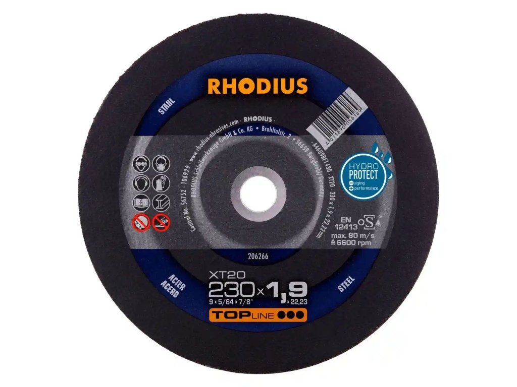 Es handelt sich hier um eine Scheibe in gerader Form (Form 41). Trennscheiben mit gerader Form ermöglichen eine größere Eintauchtiefe und somit auch mehr Schnitte. Die RHODIUS XT20 Scheiben in den Durchmessern 180 mm und 230 mm profitieren zudem von der hier eingesetzten RHODIUS EXTENDED Technologie für noch mehr Lebensdauer.