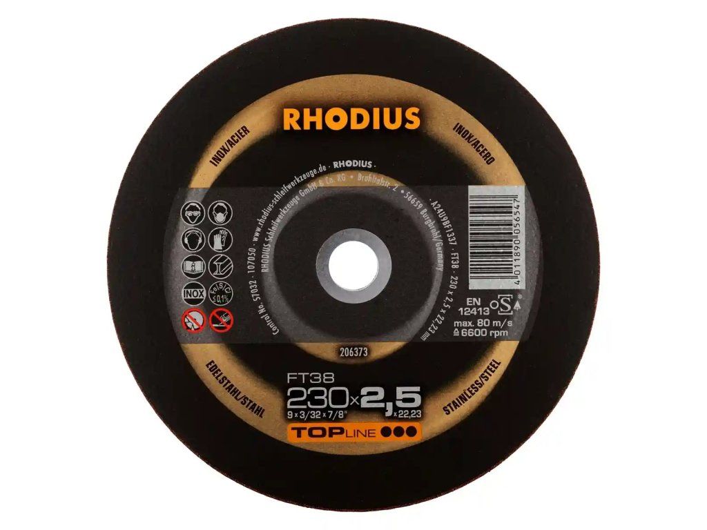 In der Anwendung zeichnet sich die FT38 durch eine sehr hohe Lebensdauer (Standzeit), einen aggressiven Schnitt, wenig Staubentwicklung und eine hervorragende Laufruhe aus. Mit dieser Trennscheibe lässt sich besonders wirtschaftlich arbeiten. Dieses RHODIUS Qualitätswerkzeug eignet sich besonders für das Trennen von Baustahl, Werkzeugstahl, rostbeständigem und säurebeständigem Stahl, hochlegiertem Stahl, hochfestem Blech, Trägern, Profilen, Platten und Traversen.