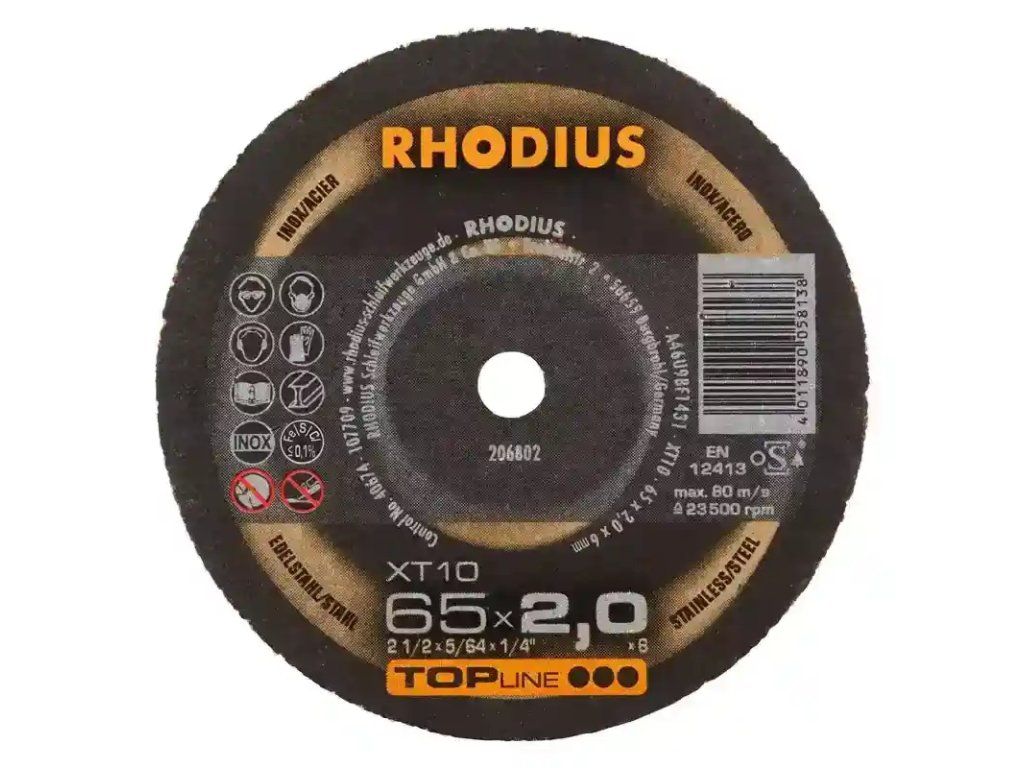 In der Anwendung überzeugt die XT10 MINI mit einem besonders aggressiven Schnitt. Auch das präzise Arbeiten in dünnwandigem Material ist kein Problem. Die Scheibe zeichnet sich hier durch geringen Funkenflug, wenig Staubentwicklung und eine hervorragende Laufruhe aus. Sie macht die Arbeit leichter und ist besonders wirtschaftlich. Diese Trennscheibe eignet sich sehr gut für das Trennen an schwer zugänglichen Stellen. Die XT10 MINI bietet dem Nutzer ein optimales Preis-Leistungs-Verhältnis. Dieses RHODIUS Qualitätswerkzeug eignet sich besonders für das Trennen von Federstählen, dünnwandigen Blechen, rostbeständigem und säurebeständigem Stahl, hochlegiertem Stahl, hochfestem Blech aber auch von Kabelschächten.