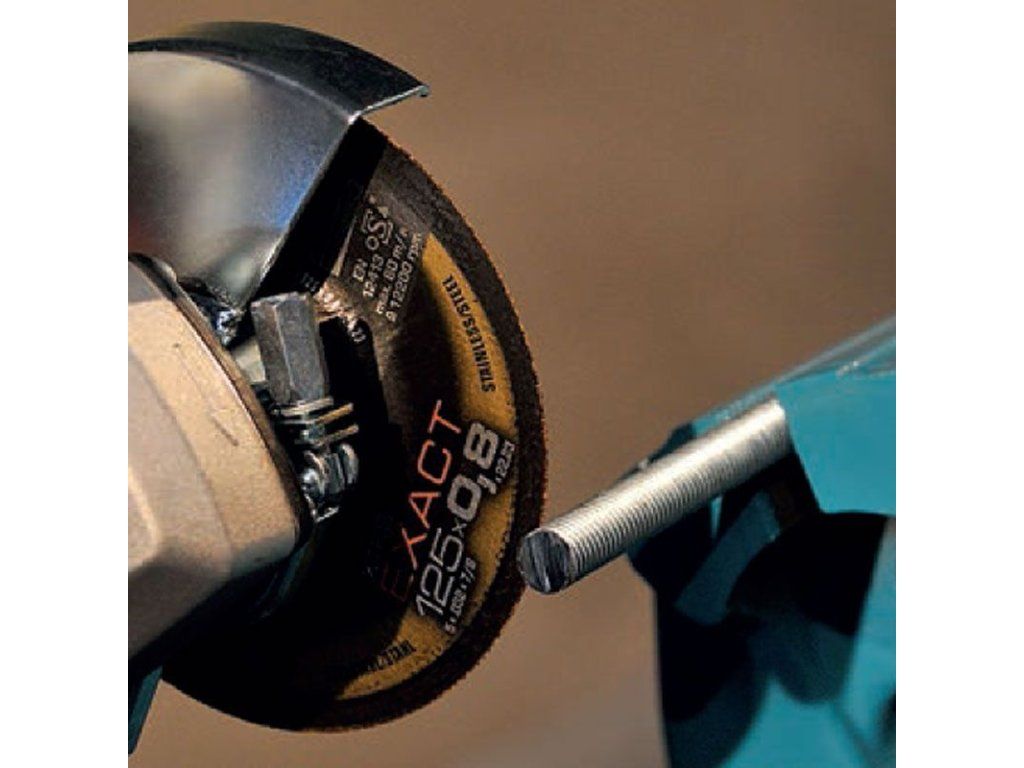 In der Anwendung überzeugt die XT8 EXACT MINI mit einem besonders leichten und schnellen Schnitt. Auch das präzise Arbeiten in dünnwandigem Material ist kein Problem. Die Scheibe zeichnet sich hier durch den geringen Funkenflug, wenig Staubentwicklung, eine hervorragende Laufruhe und einer extrem geringen Gratbildung bei einem Minimum an Anlauffarbe am Material aus. Sie macht die Arbeit leichter und ist besonders wirtschaftlich. Die Scheibe eignet sich sehr gut für das Trennen an schwer zugänglichen Stellen. Dieses RHODIUS Qualitätswerkzeug eignet sich besonders für das Trennen von Federstählen, dünnwandigen Blechen, rostbeständigem und säurebeständigem Stahl, hochlegiertem Stahl, hochfestem Blech, kunststoffbeschichtetem Blech, lackiertem Blech, verzinkten Bauteilen aber auch von Kabelschächten. Dank schmaler Spaltbreiten ist diese Trennscheibe optimal für das MIG-Löten und für Karosseriearbeiten geeignet.