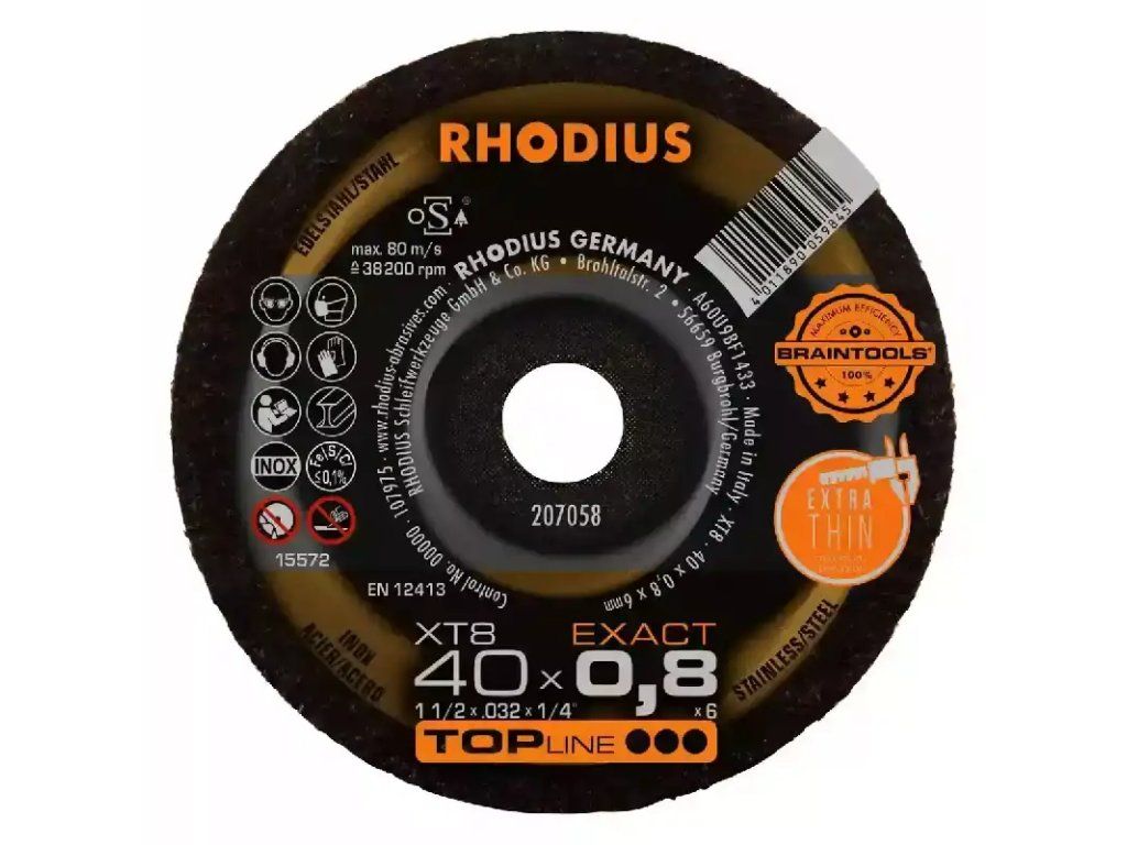 In der Anwendung überzeugt die XT8 EXACT MINI mit einem besonders leichten und schnellen Schnitt. Auch das präzise Arbeiten in dünnwandigem Material ist kein Problem. Die Scheibe zeichnet sich hier durch den geringen Funkenflug, wenig Staubentwicklung, eine hervorragende Laufruhe und einer extrem geringen Gratbildung bei einem Minimum an Anlauffarbe am Material aus. Sie macht die Arbeit leichter und ist besonders wirtschaftlich. Die Scheibe eignet sich sehr gut für das Trennen an schwer zugänglichen Stellen. Dieses RHODIUS Qualitätswerkzeug eignet sich besonders für das Trennen von Federstählen, dünnwandigen Blechen, rostbeständigem und säurebeständigem Stahl, hochlegiertem Stahl, hochfestem Blech, kunststoffbeschichtetem Blech, lackiertem Blech, verzinkten Bauteilen aber auch von Kabelschächten. Dank schmaler Spaltbreiten ist diese Trennscheibe optimal für das MIG-Löten und für Karosseriearbeiten geeignet.