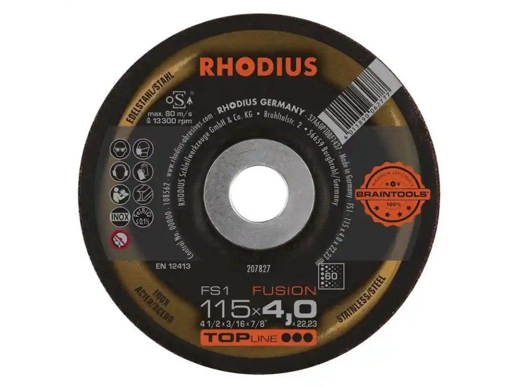 Die RHODIUS FS1 FUSION wurde gezielt für die Bearbeitung von Edelstahl (VA-Stahl, Inox), z.B. 1.4301 (X5CrNi18-10 oder 304), Stahl (Schwarzstahl auch Baustahl, St37, S235JR, 1.0037 oder Karbonstahl genannt) und Stahlguss entwickelt. Die Schruppscheibe FS1 FUSION eignet sich hervorragend für das Kehlnahtschleifen.