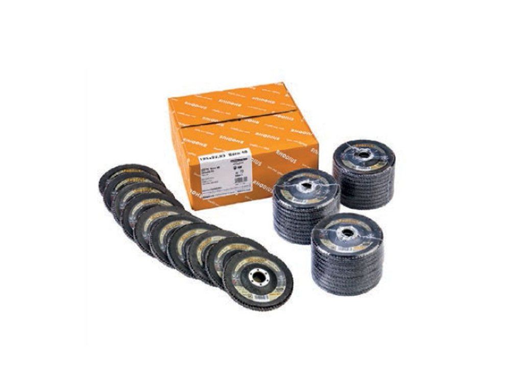 Die Fächerschleifscheibe ist in Durchmessern von 100 mm bis 180 mm erhältlich sowie je nach Ausführung mit den FEPA-Körnungen 40, 60 und 80.