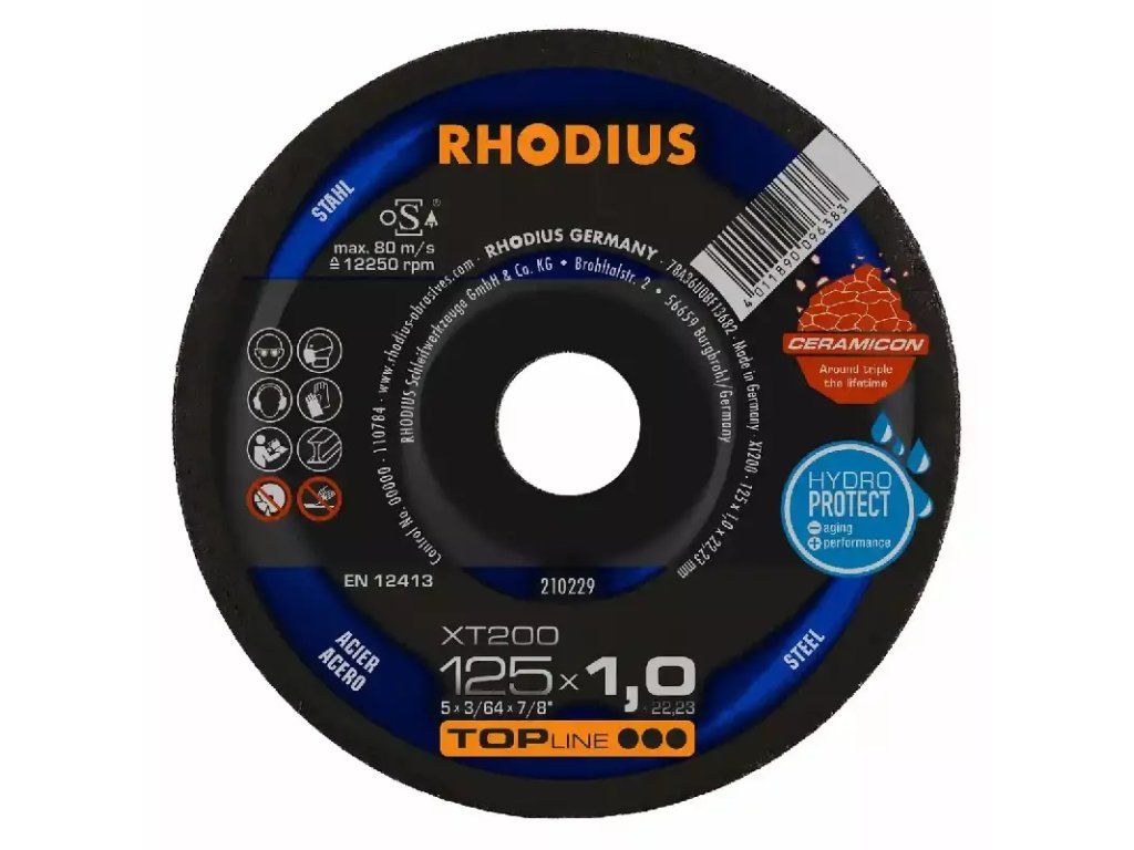 In der Anwendung überzeugt die XT200 durch eine sehr hohe Lebensdauer (Standzeit) auch im Vollschnitt und mit einem besonders aggressiven, leichten und schnellen Schnitt. Auch das präzise Arbeiten in dünnwandigem Material ist kein Problem. Die Scheibe zeichnet sich hier durch den geringen Funkenflug, wenig Staubentwicklung und eine hervorragende Laufruhe aus. Sie macht die Arbeit leichter und ist besonders wirtschaftlich. Die XT200 EXTENDED bietet dem Nutzer ein optimales Preis-Leistungs-Verhältnis. Dieses RHODIUS Qualitätswerkzeug eignet sich besonders für das Trennen von Baustahl, Werkzeugstahl, Federstählen, dünnwandigen Blechen, hochlegiertem Stahl, hochfestem Blech, Kabelschächten, Trägern, Profilen, Platten und Traversen.