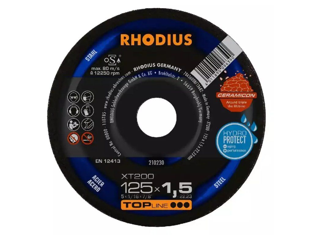 In der Anwendung überzeugt die XT200 durch eine sehr hohe Lebensdauer (Standzeit) auch im Vollschnitt und mit einem besonders aggressiven, leichten und schnellen Schnitt. Auch das präzise Arbeiten in dünnwandigem Material ist kein Problem. Die Scheibe zeichnet sich hier durch den geringen Funkenflug, wenig Staubentwicklung und eine hervorragende Laufruhe aus. Sie macht die Arbeit leichter und ist besonders wirtschaftlich. Die XT200 EXTENDED bietet dem Nutzer ein optimales Preis-Leistungs-Verhältnis. Dieses RHODIUS Qualitätswerkzeug eignet sich besonders für das Trennen von Baustahl, Werkzeugstahl, Federstählen, dünnwandigen Blechen, hochlegiertem Stahl, hochfestem Blech, Kabelschächten, Trägern, Profilen, Platten und Traversen.