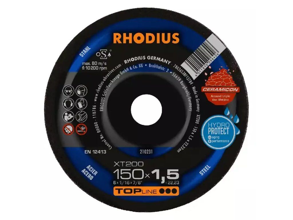 In der Anwendung überzeugt die XT200 durch eine sehr hohe Lebensdauer (Standzeit) auch im Vollschnitt und mit einem besonders aggressiven, leichten und schnellen Schnitt. Auch das präzise Arbeiten in dünnwandigem Material ist kein Problem. Die Scheibe zeichnet sich hier durch den geringen Funkenflug, wenig Staubentwicklung und eine hervorragende Laufruhe aus. Sie macht die Arbeit leichter und ist besonders wirtschaftlich. Die XT200 EXTENDED bietet dem Nutzer ein optimales Preis-Leistungs-Verhältnis. Dieses RHODIUS Qualitätswerkzeug eignet sich besonders für das Trennen von Baustahl, Werkzeugstahl, Federstählen, dünnwandigen Blechen, hochlegiertem Stahl, hochfestem Blech, Kabelschächten, Trägern, Profilen, Platten und Traversen.
