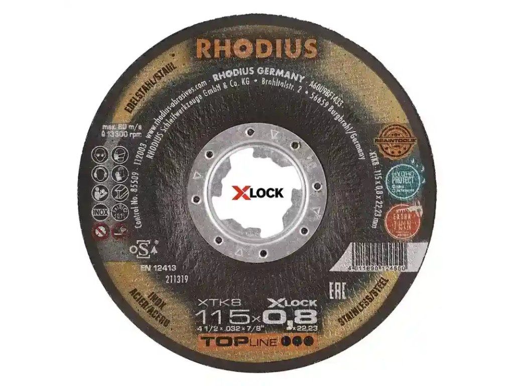 Die extradünne X-LOCK Trennscheibe mit einer Scheibenbreite von 0,8 mm ist in den Durchmessern 115 mm und 125 mm erhältlich und für Winkelschleifer unterschiedlichster Hersteller passend. Alle RHODIUS Scheiben für X-LOCK sind zudem rückwärtskompatibel, das heißt: Sie können auch auf einem herkömmlichen Winkelschleifer mit Aufnahme für eine 22,23 Bohrung genutzt werden.