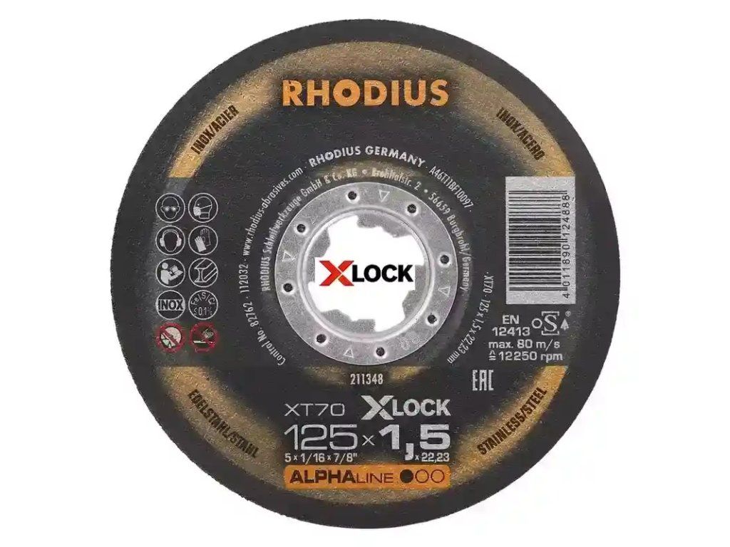 Die extradünne X-LOCK Trennscheibe mit einer Scheibenbreite von 1,0 mm bzw. 1,5 mm ist in den Durchmessern 115 mm und 125 mm erhältlich und für Winkelschleifer unterschiedlichster Hersteller passend. Alle RHODIUS Scheiben für X-LOCK sind zudem rückwärtskompatibel, das heißt: Sie können auch auf einem herkömmlichen Winkelschleifer mit Aufnahme für eine 22,23 Bohrung genutzt werden.