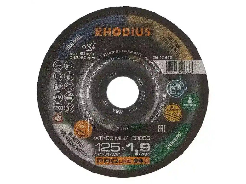 Die Scheibe ist zum Trennen und Schleifen zugelassen. In der Anwendung überzeugt die XT69 MULTI CROSS mit einem aggressiven Schnitt. Die Scheibe zeichnet sich hier durch eine hervorragende Laufruhe aus. Die XTK69 MULTI CROSS macht die Arbeit leichter. Dieses RHODIUS Qualitätswerkzeug eignet sich besonders für das Trennen von Baustahl, Profilen und Traversen.