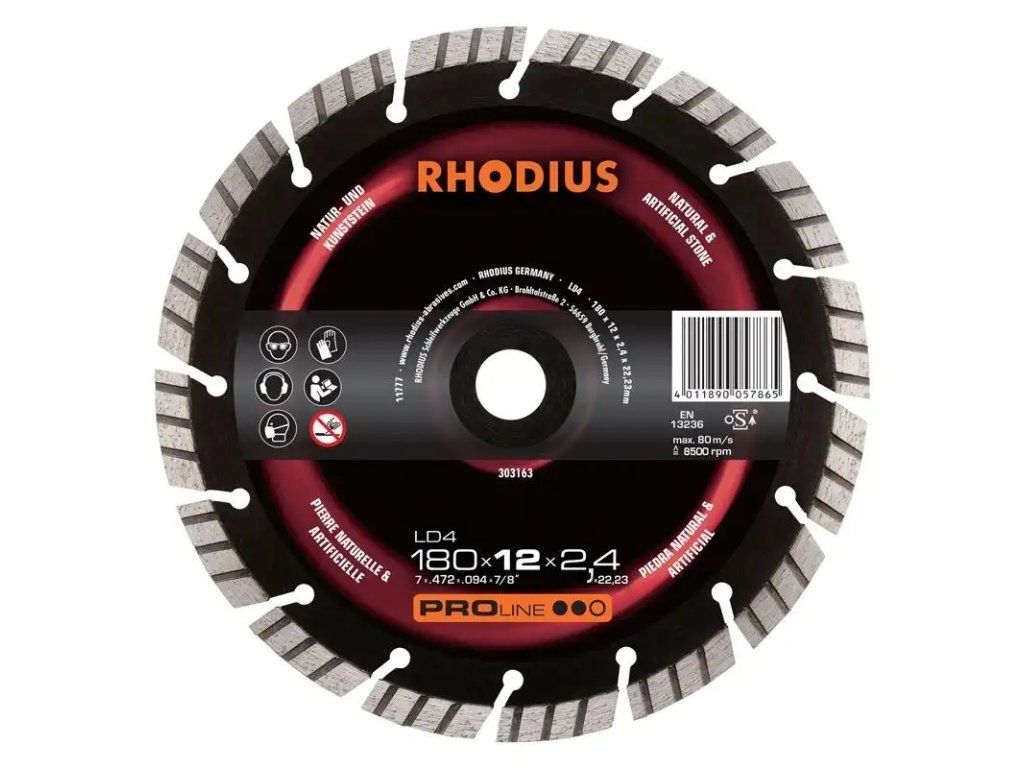 Die LD4 wurde gezielt für die Bearbeitung von Granit, glasierten Tonrohren, Gussrohren und Schiefer entwickelt. Dieses RHODIUS Qualitätswerkzeug eignet sich zudem sehr gut für die Bearbeitung von hartem Beton mit Zuschlägen, Marmor, Pflastersteinen, harten Mauerziegeln, armiertem Beton und Stahlbeton, Beton und Pflasterklinkern, Hartgestein und Gehwegplatten, Betonrohren oder Bordsteinen sowie mittelharten Mauerziegeln.
