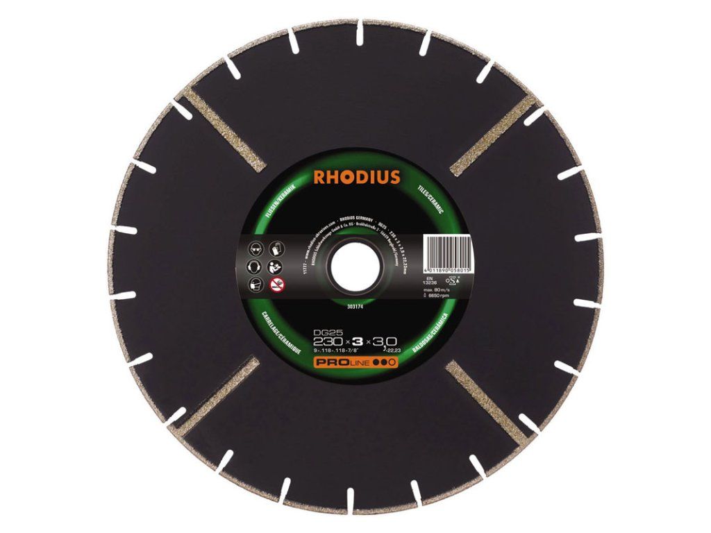 Die DG25 besitzt einen Turboschneidrand. Die Kombination aus sauberer Schnittkante und kurzer Trennzeit ist somit möglich. Das Werkzeug ist nach EN13236 und oSa geprüft und kann im Nassschnitt und auch im Trockenschnitt eingesetzt werden. Dank der hochwertigen Industriediamanten ist die DG25 besonders leistungsstark. Die Scheibe ist direkt gesintert.