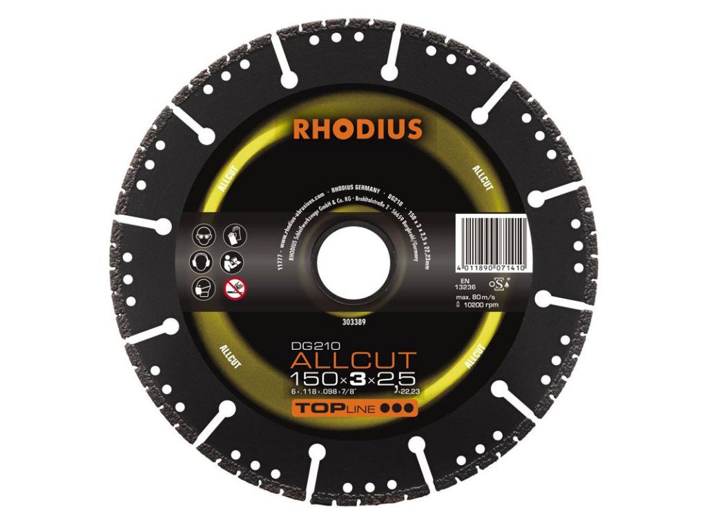 Die Diamanttrennscheibe DG210 ALLCUT ist sowohl für den Handeinsatz als auch für den stationären Einsatz geeignet: für Winkelschleifer, Benzintrenner und Tischsägen (je nach Durchmesser). Ihre Stärken kann sie auf Maschinen aller Leistungsklassen und insbesondere auf leistungsstarken Maschinen voll ausspielen.