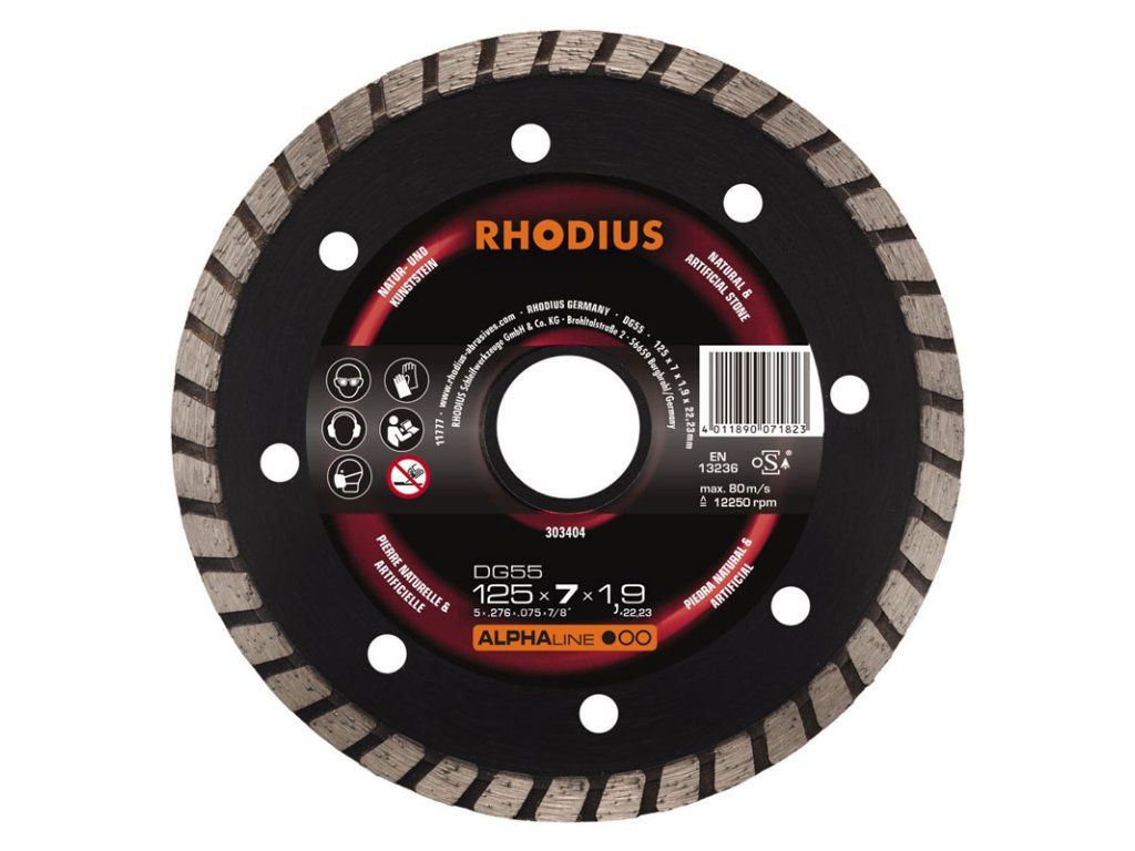 Das Allrounder-Werkzeug DG55 bietet dem Anwender ein sehr gutes Preis-Leistungs-Verhältnis im Bereich Natursteine. Der geschlossene Turboschneidrad ermöglicht ein besonders schnelles Arbeiten und saubere Schnittkanten. Für Nass- und Trockenschnitt geeignet.