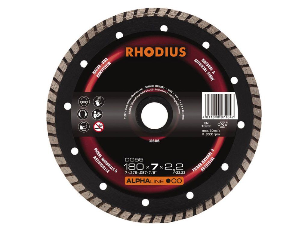Das Allrounder-Werkzeug DG55 bietet dem Anwender ein sehr gutes Preis-Leistungs-Verhältnis im Bereich Natursteine. Der geschlossene Turboschneidrad ermöglicht ein besonders schnelles Arbeiten und saubere Schnittkanten. Für Nass- und Trockenschnitt geeignet.