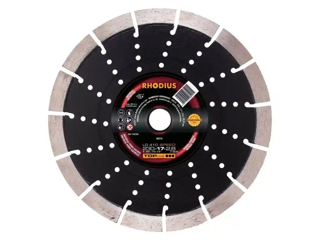 Die LD410 SPEED besitzt einen segmentierten Schneidrand. Somit wird eine sehr hohe Schnittgeschwindigkeit bei gleichzeitig maximaler Standzeit erreicht. Das Werkzeug ist nach EN13236 und oSa geprüft und kann im Nassschnitt und auch im Trockenschnitt eingesetzt werden. Dank der hochwertigen Industriediamanten und einer sehr hohe Diamantkonzentration ist die LD410 SPEED besonders leistungsstark. Die Scheibe mit geschmiedeten Segmenten ist zudem lasergeschweißt.
