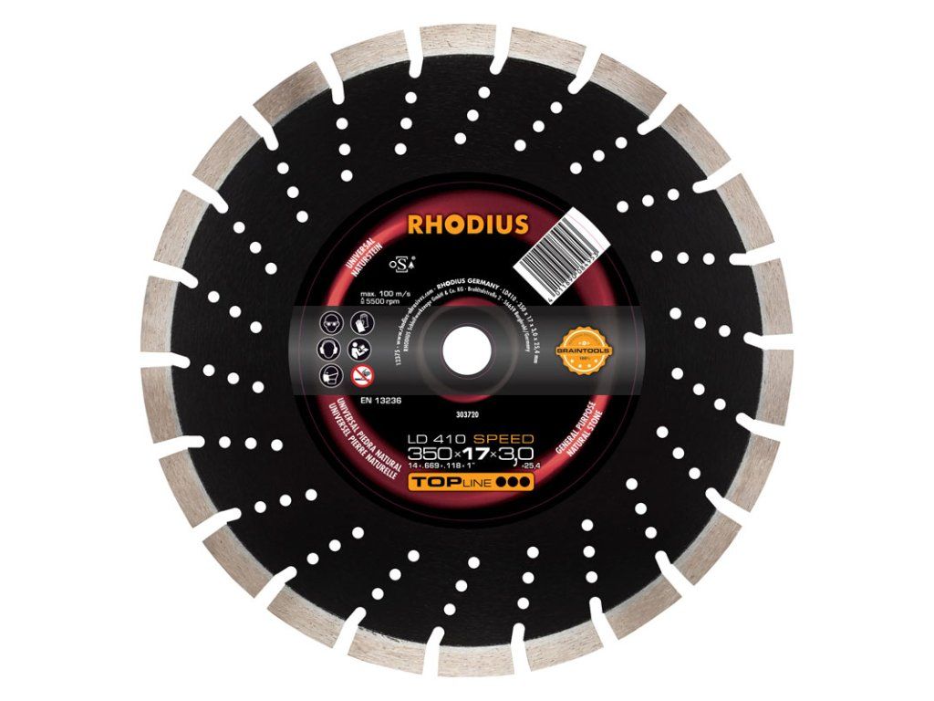 Die LD410 SPEED besitzt einen segmentierten Schneidrand. Somit wird eine sehr hohe Schnittgeschwindigkeit bei gleichzeitig maximaler Standzeit erreicht. Das Werkzeug ist nach EN13236 und oSa geprüft und kann im Nassschnitt und auch im Trockenschnitt eingesetzt werden. Dank der hochwertigen Industriediamanten und einer sehr hohe Diamantkonzentration ist die LD410 SPEED besonders leistungsstark. Die Scheibe mit geschmiedeten Segmenten ist zudem lasergeschweißt.