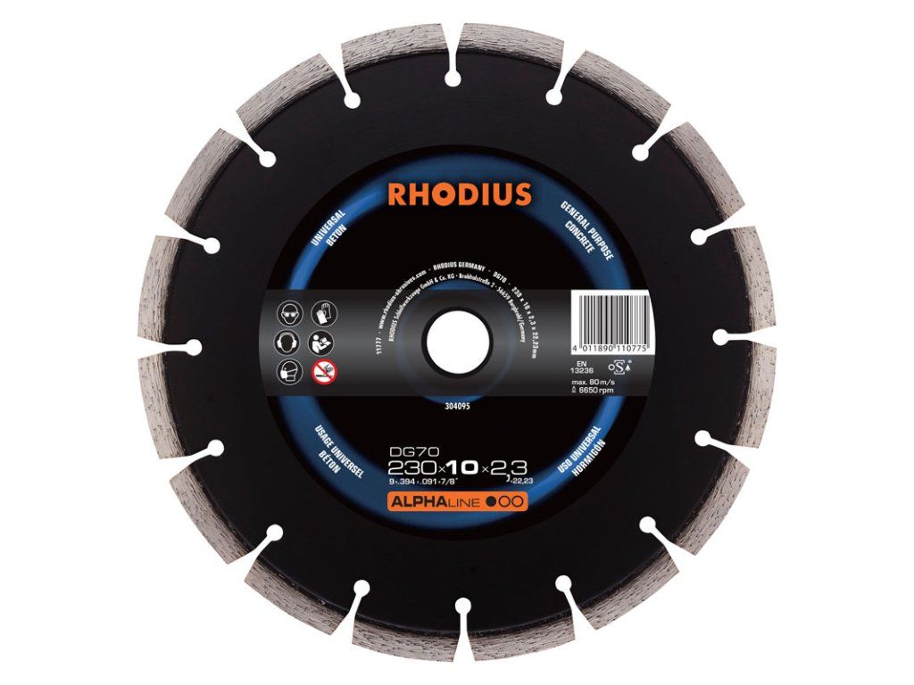 Die DG70 wurde gezielt für die Bearbeitung von Beton und Pflasterklinkern entwickelt. Dieses RHODIUS Qualitätswerkzeug eignet sich zudem sehr gut für Bearbeitung von Hartgestein und Gehwegplatten, Betonrohren und Bordsteinen.