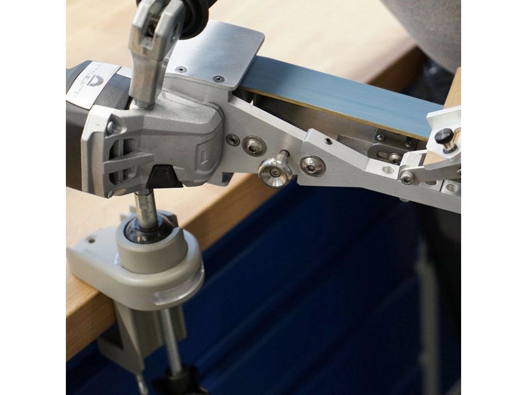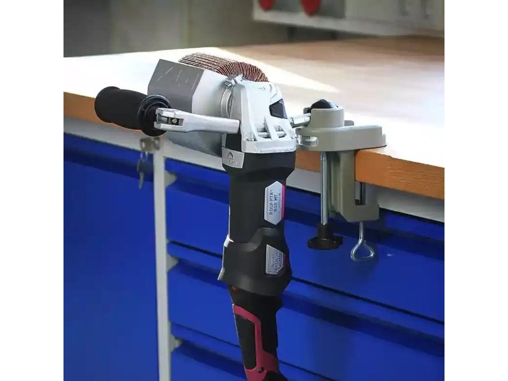 - Wird per Tischspanner an der Arbeitsplatte befestigt.