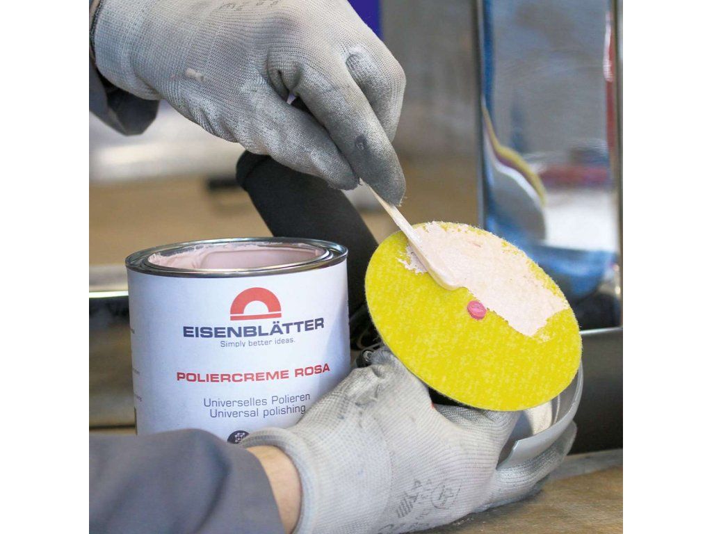 Poliercreme immer auf das Poliermedium (nicht auf das Werkstück) auftragen, um Kratzer auf der vorpolierten Oberfläche zu vermeiden!
