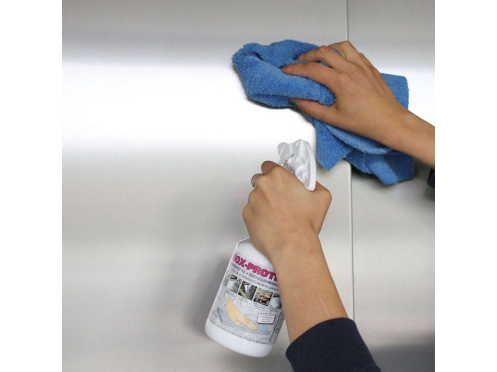 Reinigt blitzschnell und schützt z.B. dekorative Oberflächen mit transparenter Hartwachs-Schutzschicht und verhindert so langfristig Fingerabdrücke und Verfleckungen. Ideal für Edelstahl Flächen jeglicher Art wie Küchenverkleidungen, Fahrstuhlwände, Handläufe, Gestänge, Rohre, Tische und vieles mehr! Wird auf Oberfläche aufgesprüht und mittels Mikrofasertuch reibend verteilt, anschließend nach wenigen Sekunden mittels einem zweiten, trockenen Mikrofasertuch aufpoliert. Alle Teile wirken danach wie komplett neu und können anschließend bis zur Wiederholung einfach jederzeit trocken nachpoliert werden.
