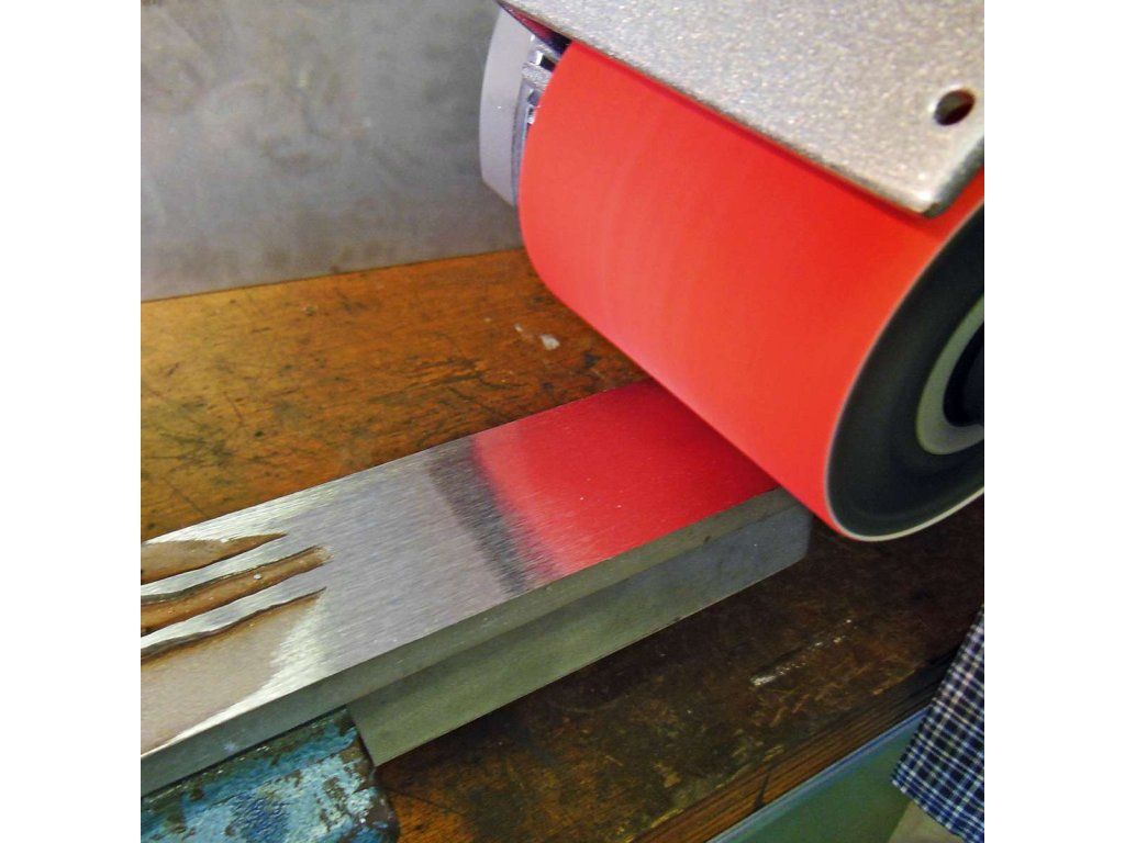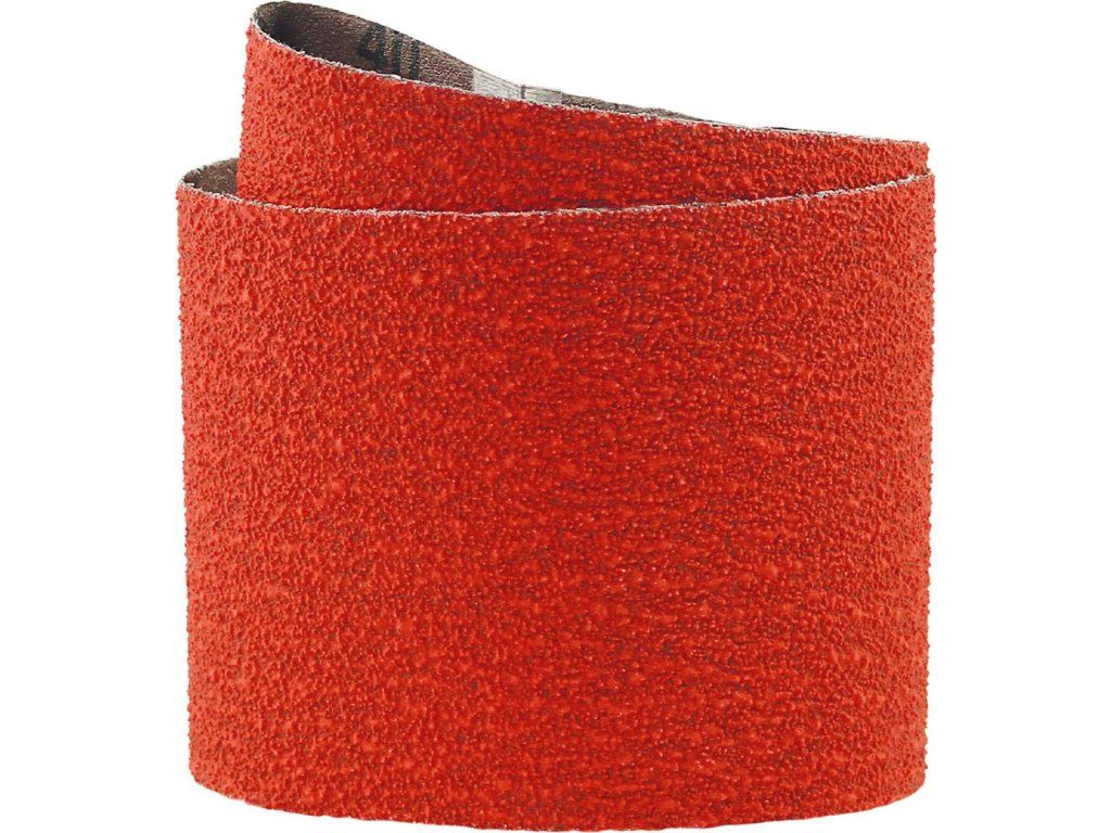 Schleifhülse aus hochqualitativem Keramikgewebe mit mehrfacher Standzeit gegenüber herkömmlichen Schleifhülsen. Zum Entfernen von tiefen Kratzern, Rost, Zunder und Schweißnähten. Erzeugt kräftige, hell-glänzende Oberflächenstrukturen (für das dekorative Grobfinish).
