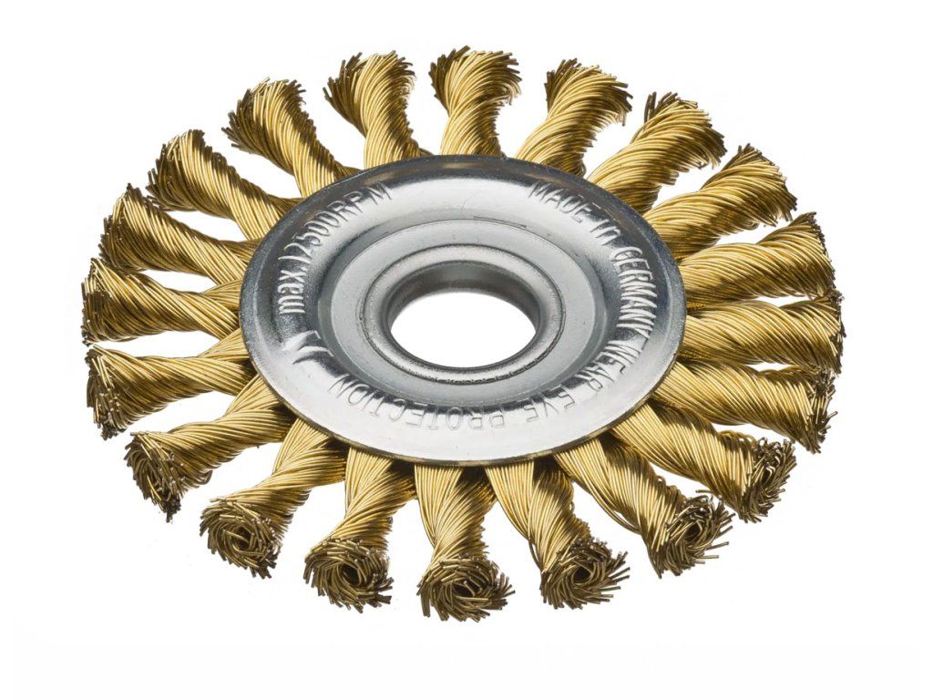 Produktbeschreibung Die Zopf-Rundbürste wird auf handgeführten Winkelschleifern zur Schweißnahtbearbeitung, Entfernung von Zunder, Rost, Lack, Schlacke und Betonresten verwendet. Der vermessingte Stahlbesatz ist zur Bearbeitung von größeren Stahloberflächen geeignet. Die links gedrehten Zöpfe erhöhen die Haltbarkeit dieser Bürste. Die hochwertige „Made in Germany“ Qualität wird vor allem in metallverarbeitenden Industrie- und Handwerksbetrieben, Autowerkstätten, dem Pipeline-, Treppen-, Geländer- und Behälterbau verwendet. Anwendung Die Zopf-Rundbürste wird zum Entgraten, zum Bearbeiten von Schweißnähten, zum Reinigen, Entzundern, Entrosten, Entlacken und Entschlacken verwendet. Anwendungen: Entgraten, Entlacken, Entrosten, Entschlacken, Entzundern, Reinigen, Schweißnahtbearbeitung Oberflächen: StahlZusätzliche Parameter
