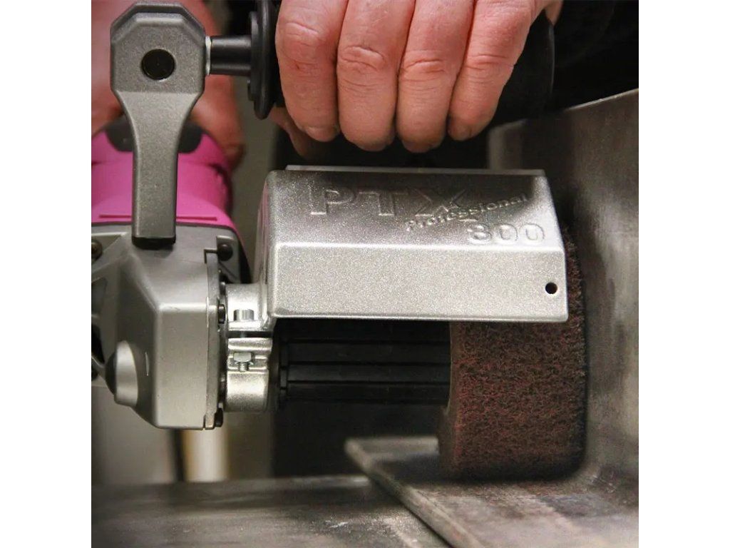 Erzeugt einen schattenfreien Industrieschliff (Mattieren, Satinieren). Auch zum Vorpolieren, Entfernen von Oxidschichten sowie zum Angleichen „vorgeschliffener“ Bleche und Glätten von Oberflächen.