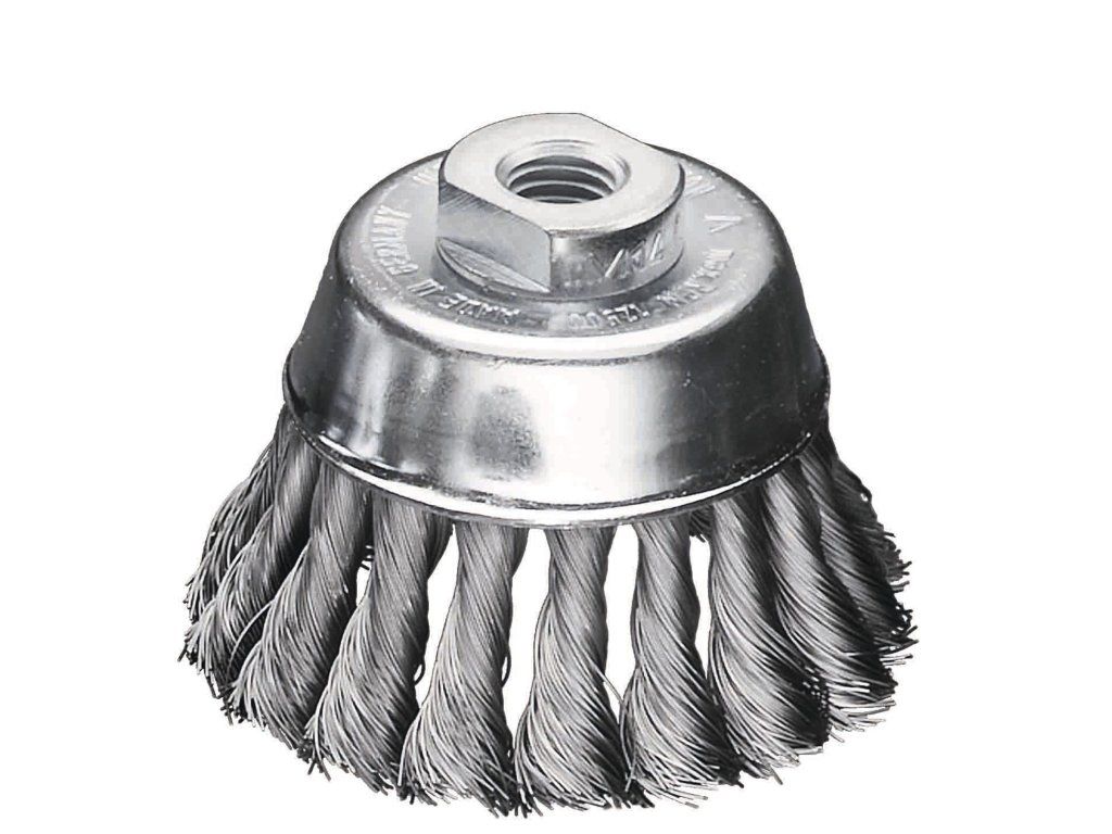 Die Zopf-Topfbürste ist zum Einsatz auf handgeführten Winkelschleifern, zur Schweißnahtbearbeitung, zur Entfernung von Zunder, Rost, Lack, Schlacke und Betonresten geeignet. Die Bürste mit Stahldraht ist für die Bearbeitung größerer Stahloberflächen geeignet. Die gezopfte Topfbürste ist für den professionellen Einsatz geeignet. Diese Topfbürste zeichnet sich durch einen ruhigen und Unwucht freien Lauf aus. Die hochwertige „Made in Germany“ Qualität wird oft in metallverarbeitenden Industrie- und Handwerksbetrieben, Autowerkstätten, Treppen-, Geländer- und Behälterbauern verwendet. Artikelbezeichnung Zopf-Topfbürsten ZT Drm 80 x 14 mm 1 rhg. x 18 Z Blume rechts Stahldraht STH glatt 0.35 mm Gew. M14 Besatzhöhe 33 mm Anwendung Die Zopf-Topfbürste wird zum Bearbeiten von Schweißnähten, zum Reinigen, Entzundern, Entrosten, Entlacken und Entschlacken verwendet. Anwendungen: Entlacken, Entrosten, Entschlacken, Entzundern, Reinigen, Schweißnahtbearbeitung Oberflächen: StahlZusätzliche Parameter