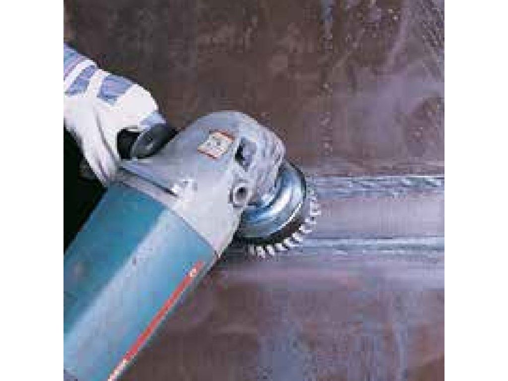 Die Zopf-Topfbürste ist zum Einsatz auf handgeführten Winkelschleifern, zur Schweißnahtbearbeitung, zur Entfernung von Zunder, Rost, Lack, Schlacke und Betonresten geeignet. Die Bürste mit Stahldraht ist für die Bearbeitung größerer Stahloberflächen geeignet. Die Aggressivität ist hart. Die gezopfte Topfbürste ist für den professionellen Einsatz geeignet. Diese Topfbürste zeichnet sich durch einen ruhigen und Unwucht freien Lauf aus. Die hochwertige „Made in Germany“ Qualität wird oft in metallverarbeitenden Industrie- und Handwerksbetrieben, Autowerkstätten, Treppen-, Geländer- und Behälterbauern verwendet. Artikelbezeichnung Zopf-Topfbürsten ZT Drm 65 x 12 mm 1 rhg. x 18 Z Blume rechts Stahldraht STH glatt 0.50 mm Gew. M14 Besatzhöhe 20 mm Anwendung Die Zopf-Topfbürste wird zum Bearbeiten von Schweißnähten, zum Reinigen, Entzundern, Entrosten, Entlacken und Entschlacken verwendet. Anwendungen: Entlacken, Entrosten, Entschlacken, Entzundern, Reinigen, Schweißnahtbearbeitung Oberflächen: StahlZusätzliche Parameter