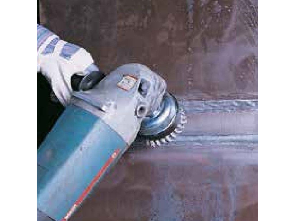 Die Zopf-Topfbürste ist zum Einsatz auf handgeführten Winkelschleifern, zur Schweißnahtbearbeitung, zur Entfernung von Zunder, Rost, Lack, Schlacke und Betonresten geeignet. Die Bürste mit Stahldraht ist für die Bearbeitung größerer Stahloberflächen geeignet. Die Aggressivität ist hart. Die gezopfte Topfbürste ist für den professionellen Einsatz geeignet. Diese Topfbürste zeichnet sich durch einen ruhigen und Unwucht freien Lauf aus. Die hochwertige „Made in Germany“ Qualität wird oft in metallverarbeitenden Industrie- und Handwerksbetrieben, Autowerkstätten, Treppen-, Geländer- und Behälterbauern verwendet. Artikelbezeichnung Zopf-Topfbürsten ZT mit Stützring Drm 100 x 14 mm 1 rhg. x 26 Z Blume rechts Stahldraht STH glatt 0.50 mm Gew. M14 Besatzhöhe 23 mm Anwendung Die Zopf-Topfbürste wird zum Bearbeiten von Schweißnähten, zum Reinigen, Entzundern, Entrosten, Entlacken und Entschlacken verwendet. Anwendungen: Entlacken, Entrosten, Entschlacken, Entzundern, Reinigen, Schweißnahtbearbeitung Oberflächen: StahlZusätzliche Parameter