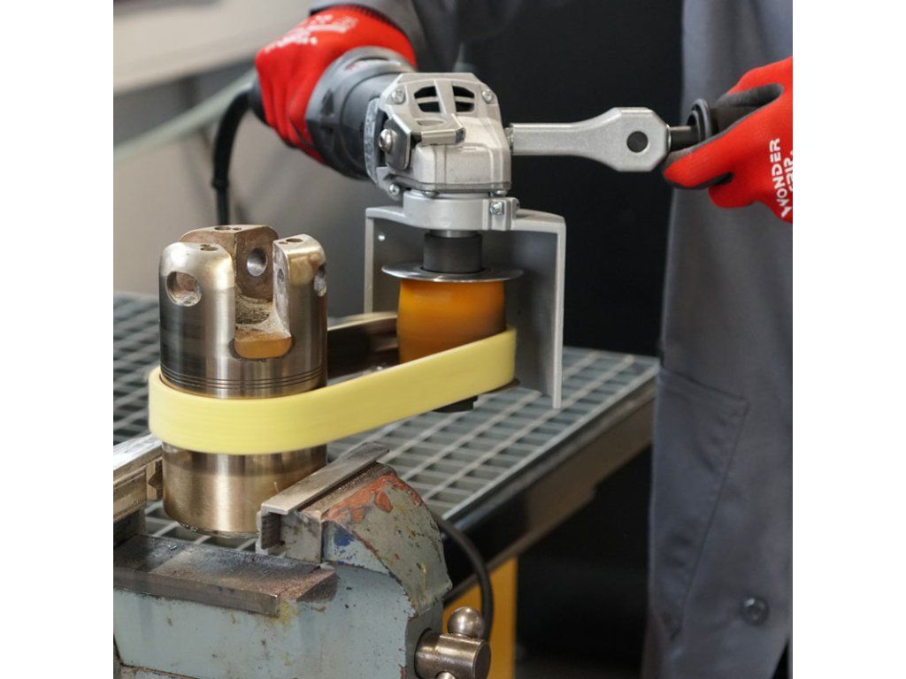 - Nur in Verbindung mit einer Schleifbandrolle verwendbar.