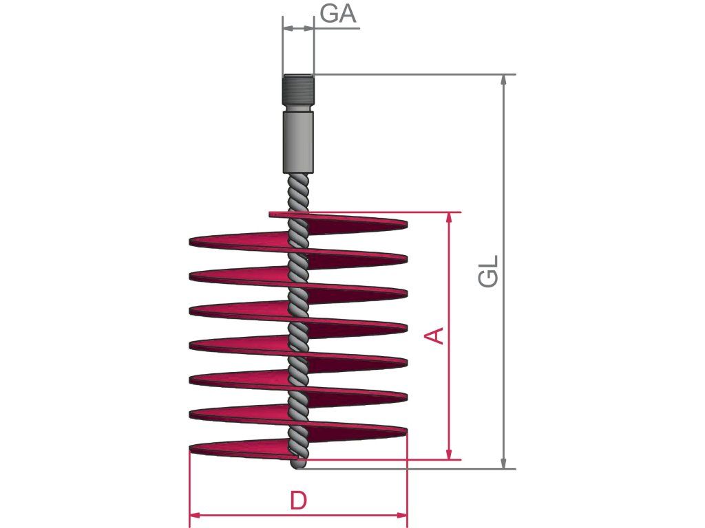 500810 | Rohrbürste IBG, Aussengewinde 10x115 / Einfachspirale, Polyamid, aussen M6