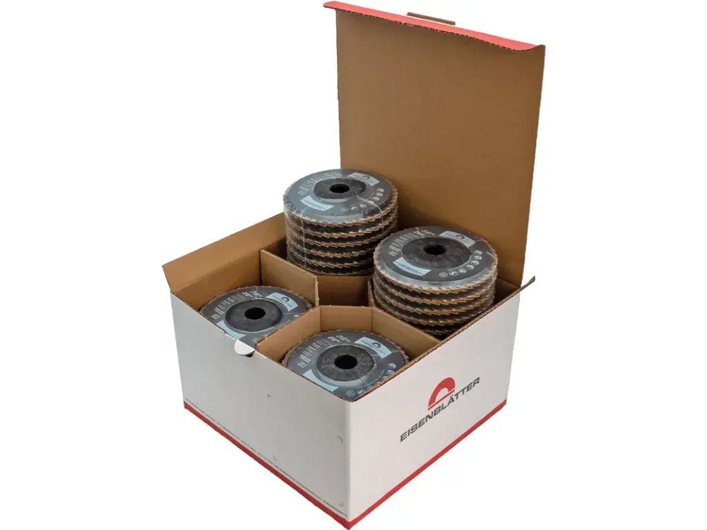 - Hochleistungsfächerschleifscheibe bietet herausragende Lebensdauer und Abtragsleistung auf Stahl und VA.