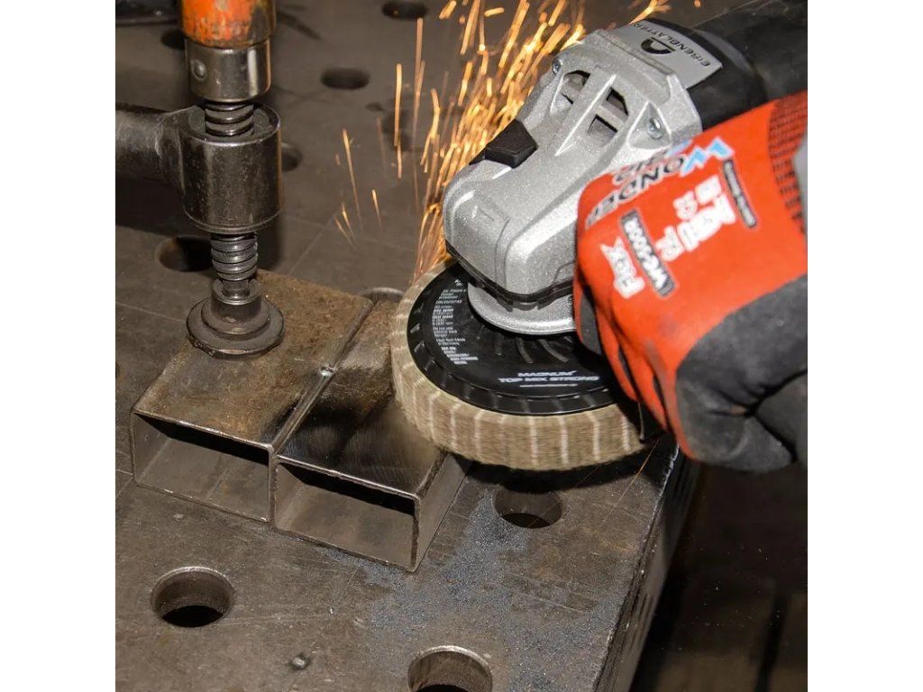 Für den Vor- und Feinschliff und zum Entfernen von Schweißpunkten, tiefen Kratzern auf VA, Stahl und Buntmetallen, hervorragend auch zum Feinentgraten von gestanzten Lochblechen oder Nacharbeit im Eckenbereich.
