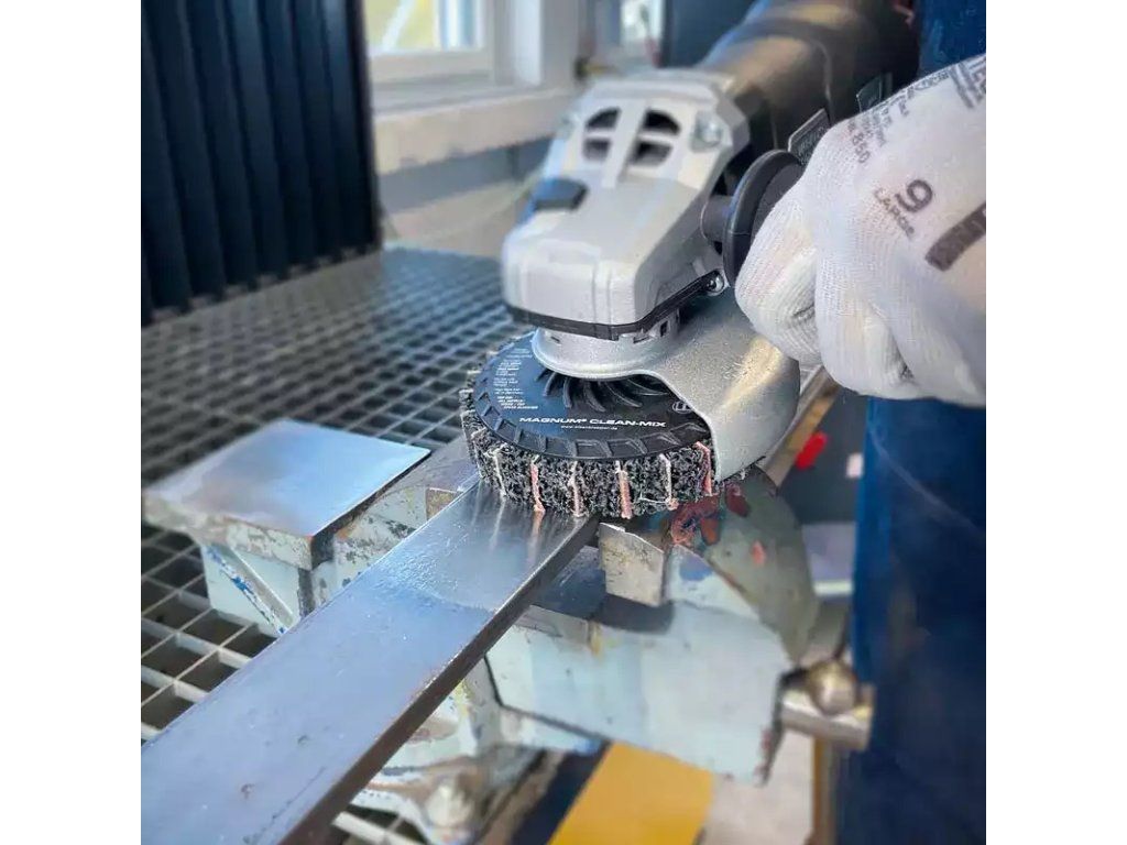 Reinigungsscheiben für schnelles und gründliches Entzundern, Entrosten und Entgraten. Mit Schleiflamellen-Zwischenlagen für einen stärkeren Reinigungseffekt als herkömmliche Reinigungsscheiben in nur einem Arbeitsschritt. Sie eignen auch hervorragend, die Zinkverdickungen, Tropfnasen und Zinkspitzen nach dem Verzinken zu entfernen, sowie um die Oberfläche für eine nachfolgende Pulverbeschichtung aufzurauen. Durch die offenen, elastischen Gewebeporen des CLEAN Materials, setzt sich die Schleifscheibe nicht zu und erzielt auf Metall einen „Sandstrahleffekt“.